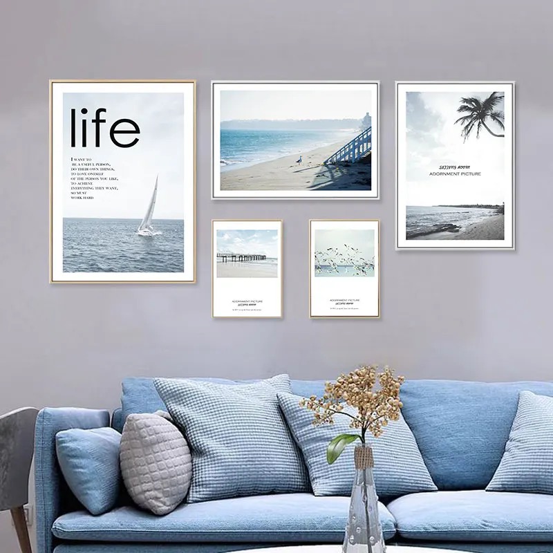 Us 2 84 50 Off Modern Lanskap Tropis Perahu Layar Kanvas Lukisan Burung Camar Laut Dinding Seni Gambar Poster Cetak Untuk Ruang Tamu Dekorasi In