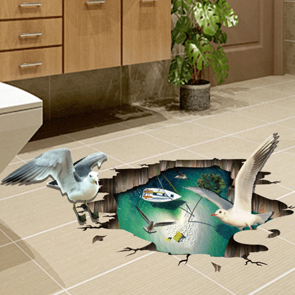 3d Gaya Burung Camar Laut Perahu Lantai Sticker Dinding