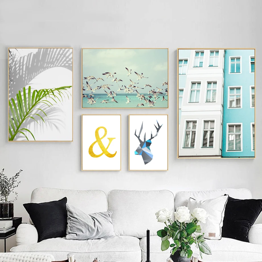 Us 2 88 36 Off Rumah Palm Daun Burung Camar Laut Rusa Dinding Seni Lukisan Kanvas Nordic Poster Dan Cetakan Dinding Gambar Untuk Ruang Tamu Rumah