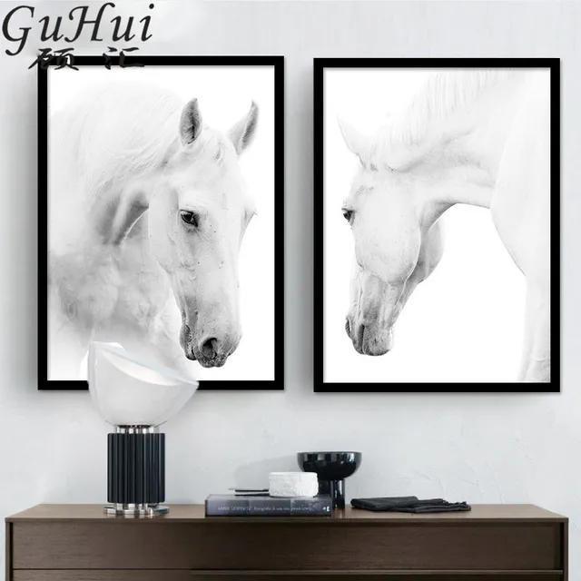 Us 3 75 47 Off Kuda Putih Kepala Kanvas Dekoratif Lukisan Modern Hitam Putih Fotografi Foto Tanpa Bingkai Seni Hewan Dinding Gambar Dekorasi Rumah