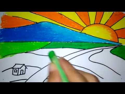 Cara Menggambar Dan Mewarnai Pemandangan Alam Mudah Dengan Gradasi Crayon Drawing Nature Scenery