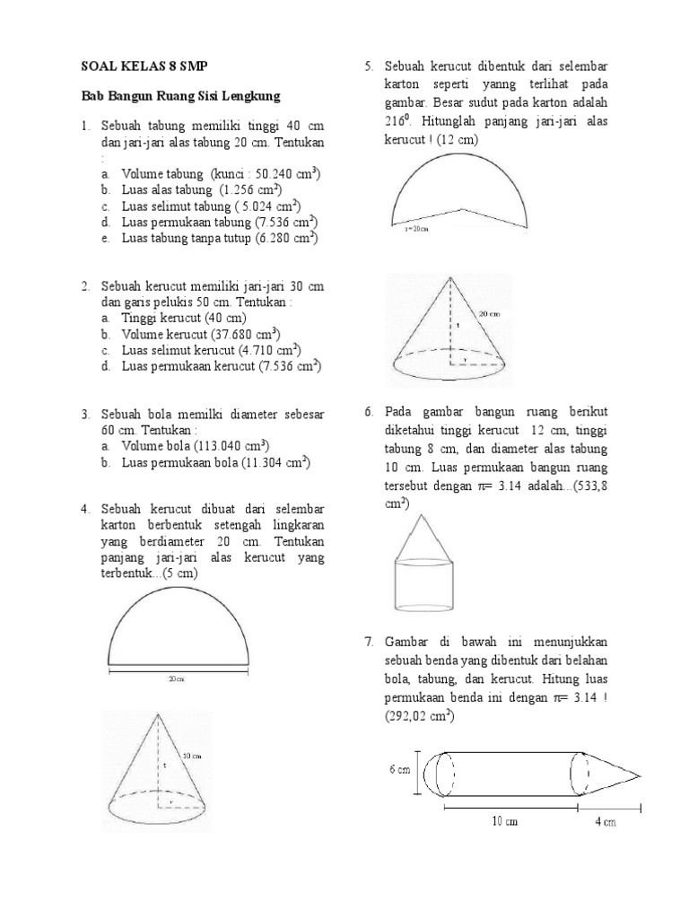Soal Soal Volume Bangun Ruang Sisi Lengkung