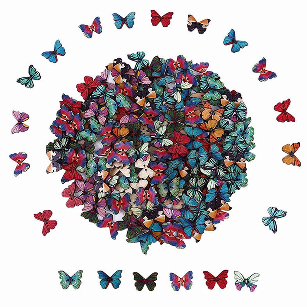 50pcs Kancing Kayu Bentuk Kartun Kupu Kupu Untuk Dekorasi Scrapbook