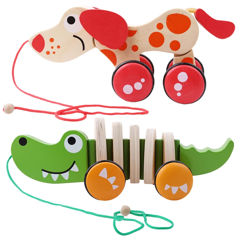 Us 8 11 45 Off 1 Pcs Kids Kayu Buaya Anjing Drag Memutar Mainan Anak Kartun Hewan Memutar Teka Teki Klasik Mobil Mainan Bayi Mainan Pendidikan In