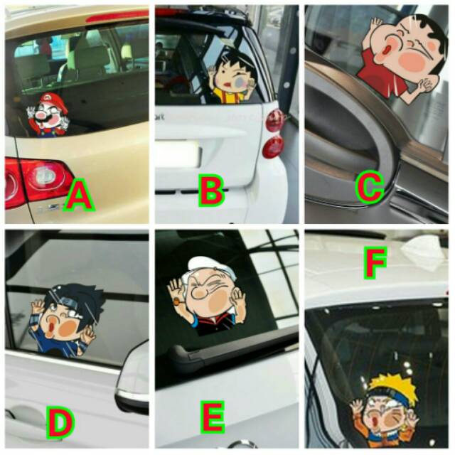Stiker Mobil Tabrak Kaca Popeye Naruto Sinchan Mario Bros
