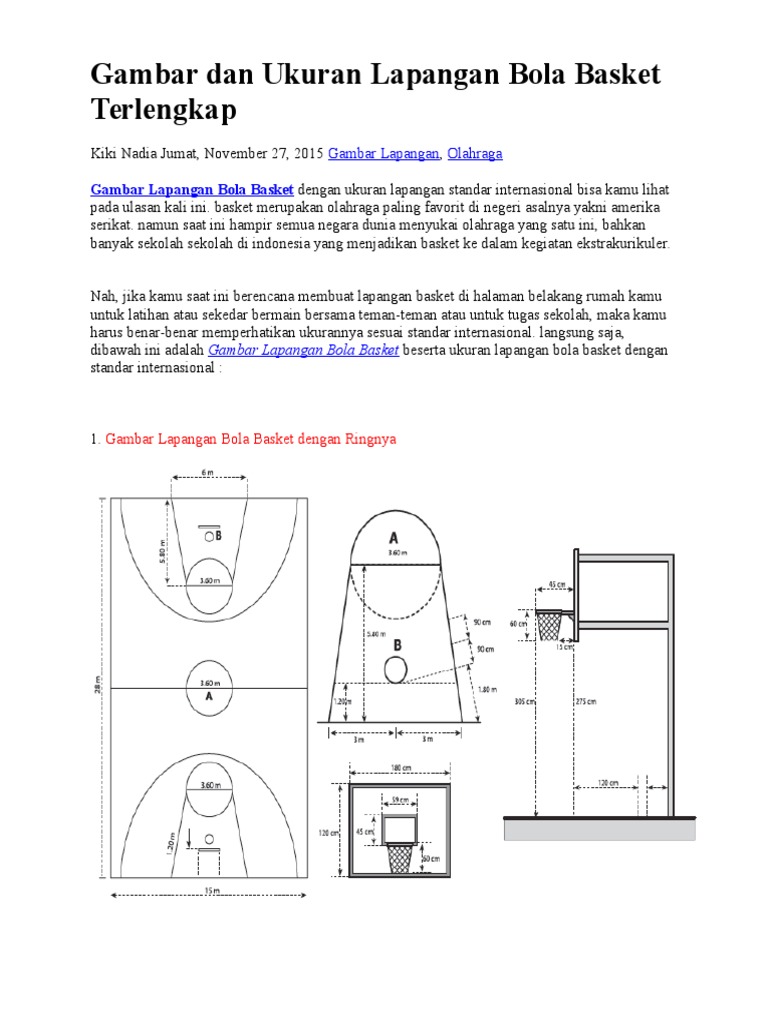 Ukuran Lapangan Bola Basket Tinggi Ring Gambar Lengkap