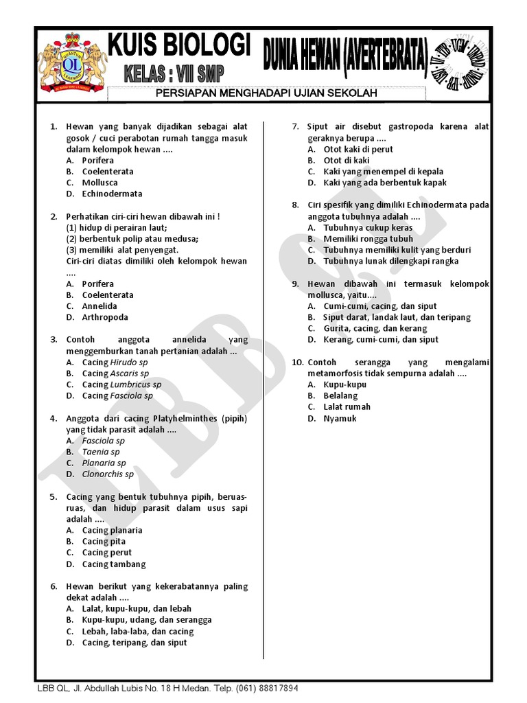 Quizz Kelas Vii Smp Dunia Hewan Avertebrata